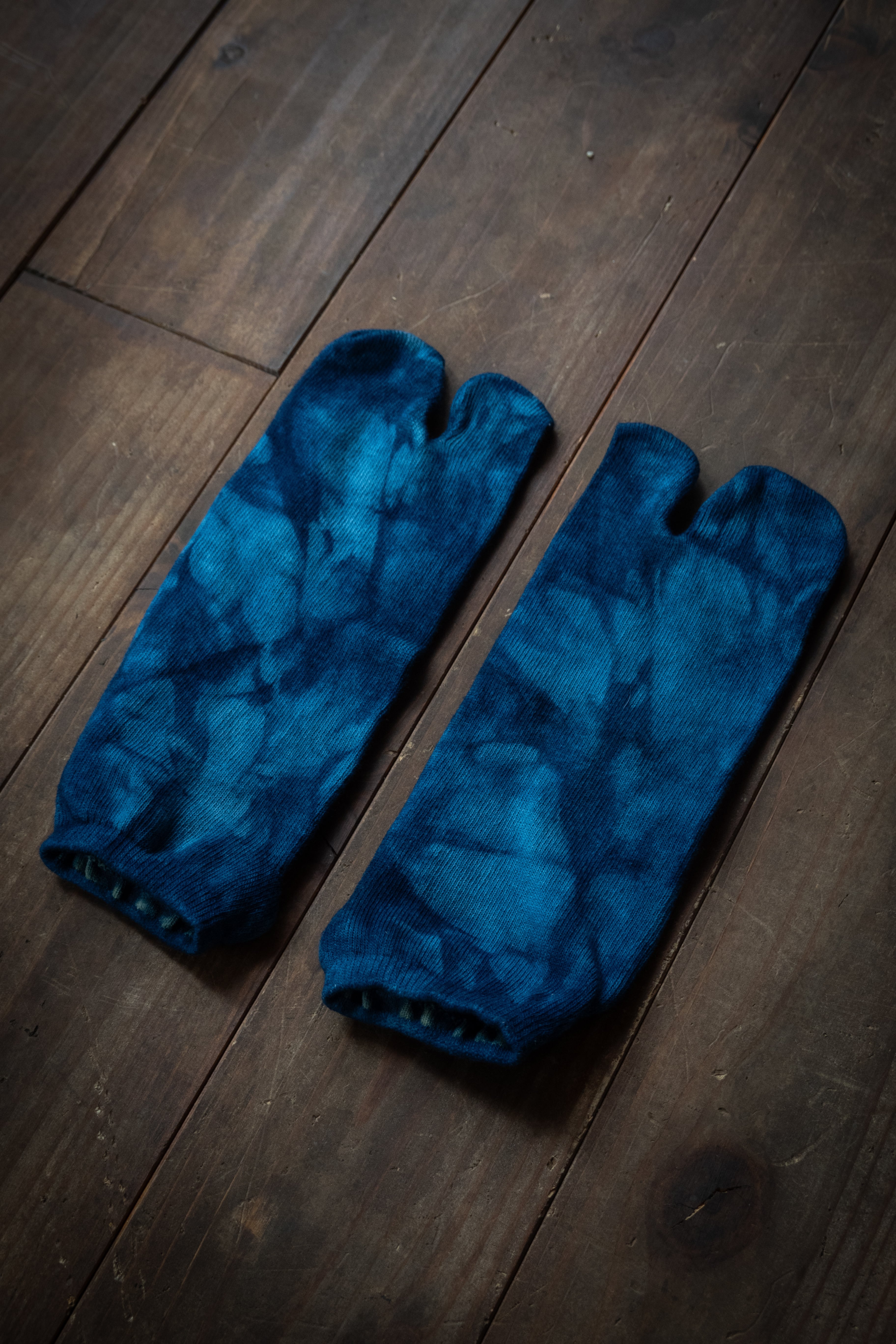踏ん張りの効く足袋型、本藍染靴下。